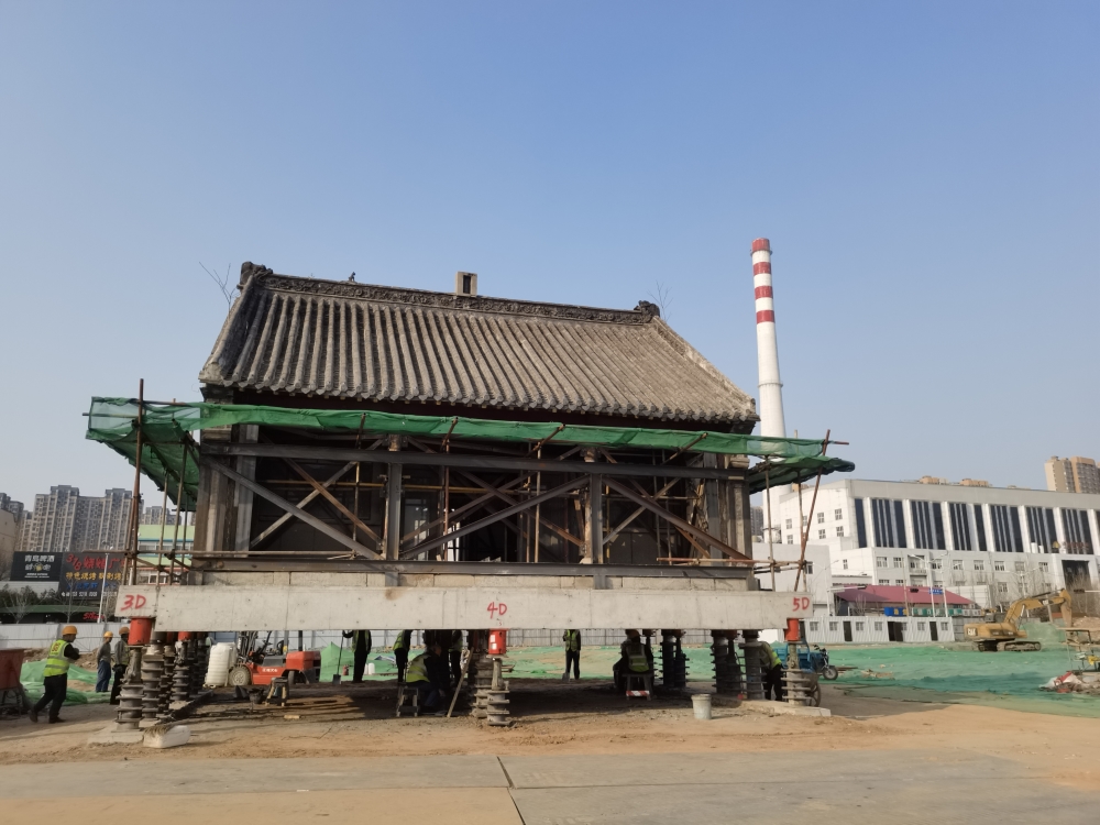 濟南市歷下區(qū)科技城片區(qū)“三元宮”始建于近400多年前的明朝,它曾是一處道教宮。為磚木結(jié)構(gòu),1間1層樓閣式,建筑占地面積約70平方米。硬山頂,前面設廊,室內(nèi)設四榀五檁抬梁木構(gòu)架。本次遷移重量280噸,遷移距離255米。