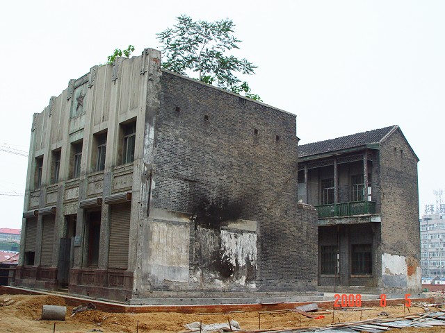 2008年3月,因經(jīng)二路拓寬改造,同時(shí)出于保護(hù)歷史建筑的需要,對(duì)該建筑實(shí)施平移保護(hù),先向北平移11.8m,旋轉(zhuǎn)3.8度,再向東平移16.6m,建筑物平移到位后,再整體頂升0.4m。