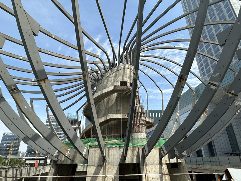 CBD中央廣場17#地塊位于山東省濟南市,地塊南側為經十東路,東側為茂嶺山三號路,北側鄰解放東路,西側為規劃路及規劃中的市民公園,項目用地面積17033平方米。碗形建筑位于該地塊西側市民公園,該建筑始建于2017年,完成部分構件施工后于同年停工,至2022年11月,委托單位擬繼續施工。